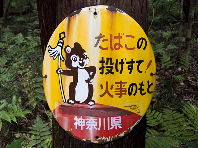 良いタッチだなあ。近頃はこういう看板ももっとイマ風のタッチになっているから、森の中で静かに錆びながらもお役目を続けるリス君に感慨深いものを感じてしまう。