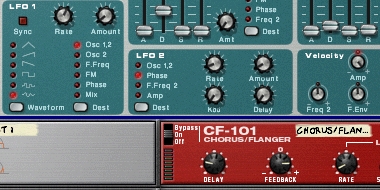 ●ポイント3 LFOによるピッチ、PWMのモジュレート+フランジャーで味付け